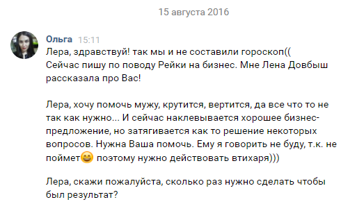 Не буду Вас долго утомлять отзывами и результатами, их много личных, которые я, естественно, не опубликую без разрешения клиентов. Почему много отзывов лидеров компании Орифлейм? Потому что я работала в проекте «Экспресс-карьера» и лидеры обращаются ко мне постоянно еще, кроме личных вопросов, по анализу бизнеса. У меня много клиентов не связанных с сетевым бизнесом. Не имеет значение род деятельности человека, который ко мне обращается. Звезды, таро подсказывают решение задач всем, кому это надо.