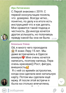 Валерия очень добрый, положительный и открытый человек, раньше я не доверяла всяким там «астропсихологам», думала — ну что они мне скажут нового, я гороскопов начиталась ещё в юности и всё знаю о себе….но НЕТ, Лера смотрит с профессиональной стороны, а не как я — любитель, поэтому просыпается доверие и огромная охота слушать её рекомендации. Спасибо за то, что судьба свела меня с таким человеком, как Валерия Смирнова!